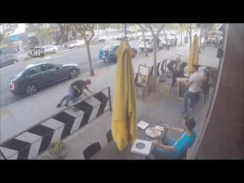 Man stops fight with Pizza